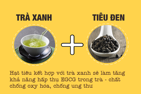 Trà xanh và hạt tiêu đen: tăng khả năng chống oxy hóa, làm gián đoạn quá trình trao đổi chất của tế bào ung thư
