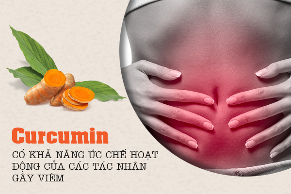 Curcumin giúp kiểm soát và ức chế hoạt động của các tác nhân gây viêm nhiễm bao gồm TNF-alpha và hạt nhân tố-kappa B bằng cách tác động trực tiếp lên protein cũng như các tác nhân sinh hóa gây viêm khác.