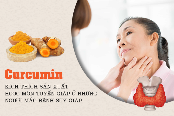 Nhiều nghiên cứu khoa học đã chỉ ra rằng curcumin có tác dụng kích thích sản sinh lượng hormone thiếu hụt, giúp tuyến giáp trở về trạng thái cân bằng. Đồng thời giúp giảm mức độ cholesterol cao gây ra suy giáp.